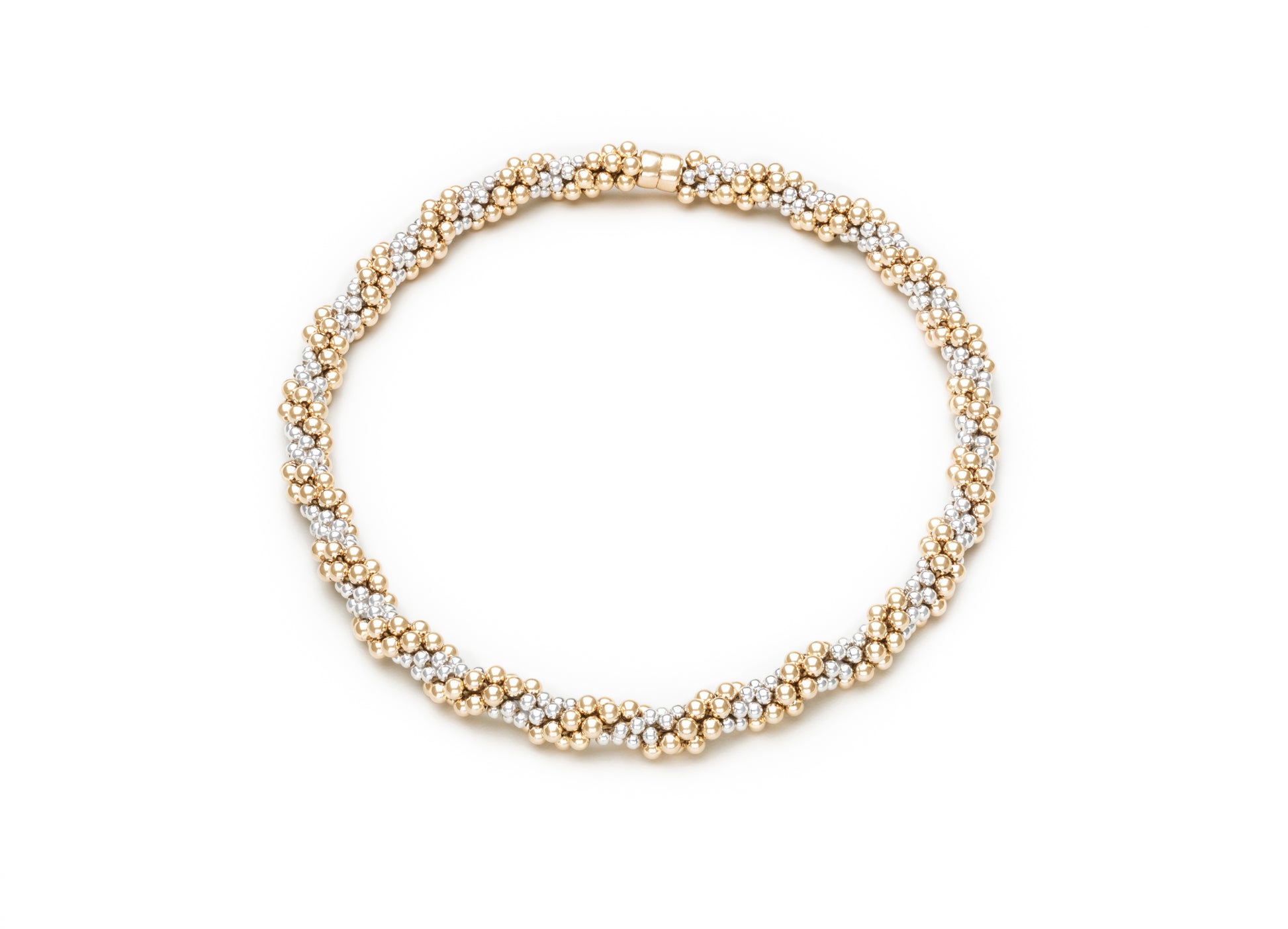 Designed as a textured 14k gold-filled and sterling silver cluster bands, 16 inches.