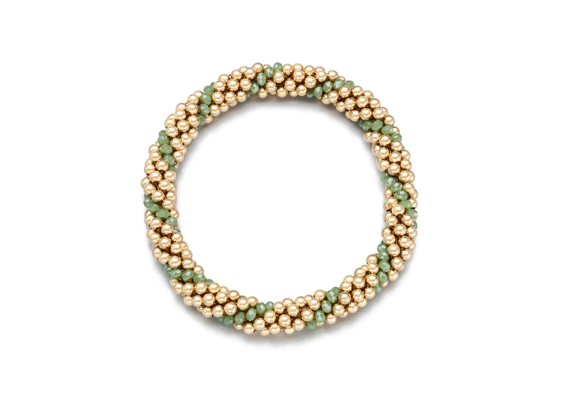 Designed as a 3mm 14k gold-filled cluster bracelet with a crystal spiral