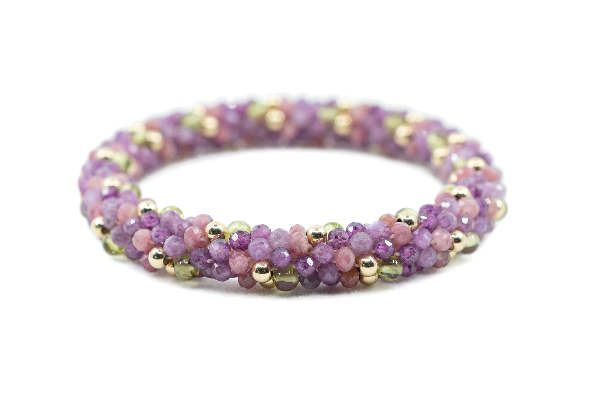 Semi Precious Cluster bracelet with Amethyst, Peridot and Pink Tourmaline