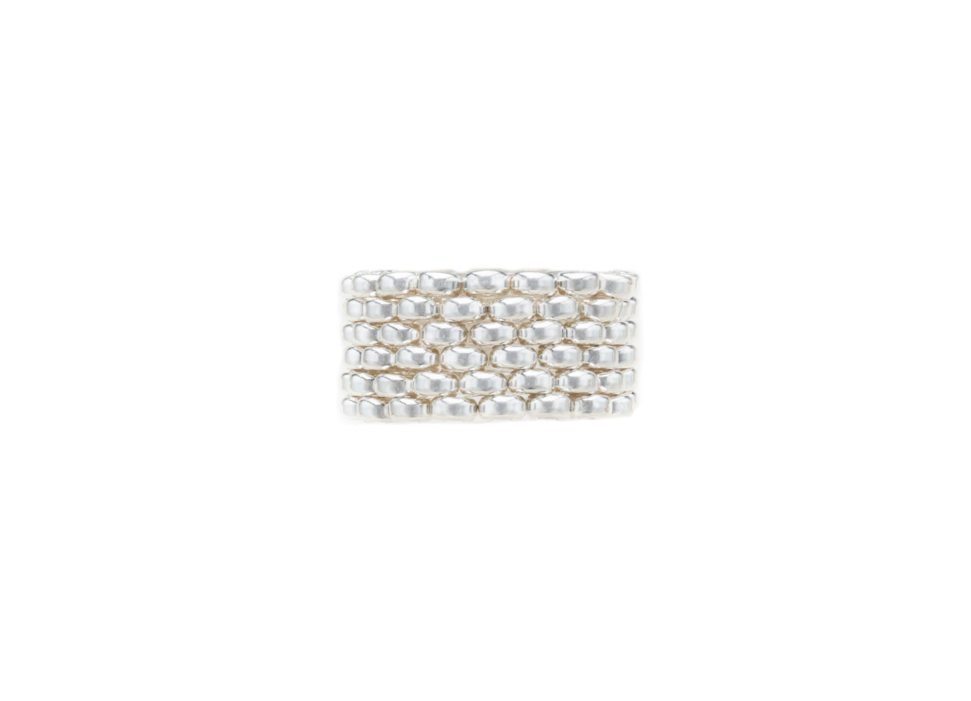 Designed as a flexible sterling silver band eight-row band. Also available in varying widths from 4 to 8 rows.